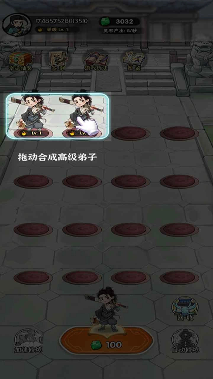 2. 合成规则为使用两名相同等级的弟子进行融合,生成更高一级的弟子。