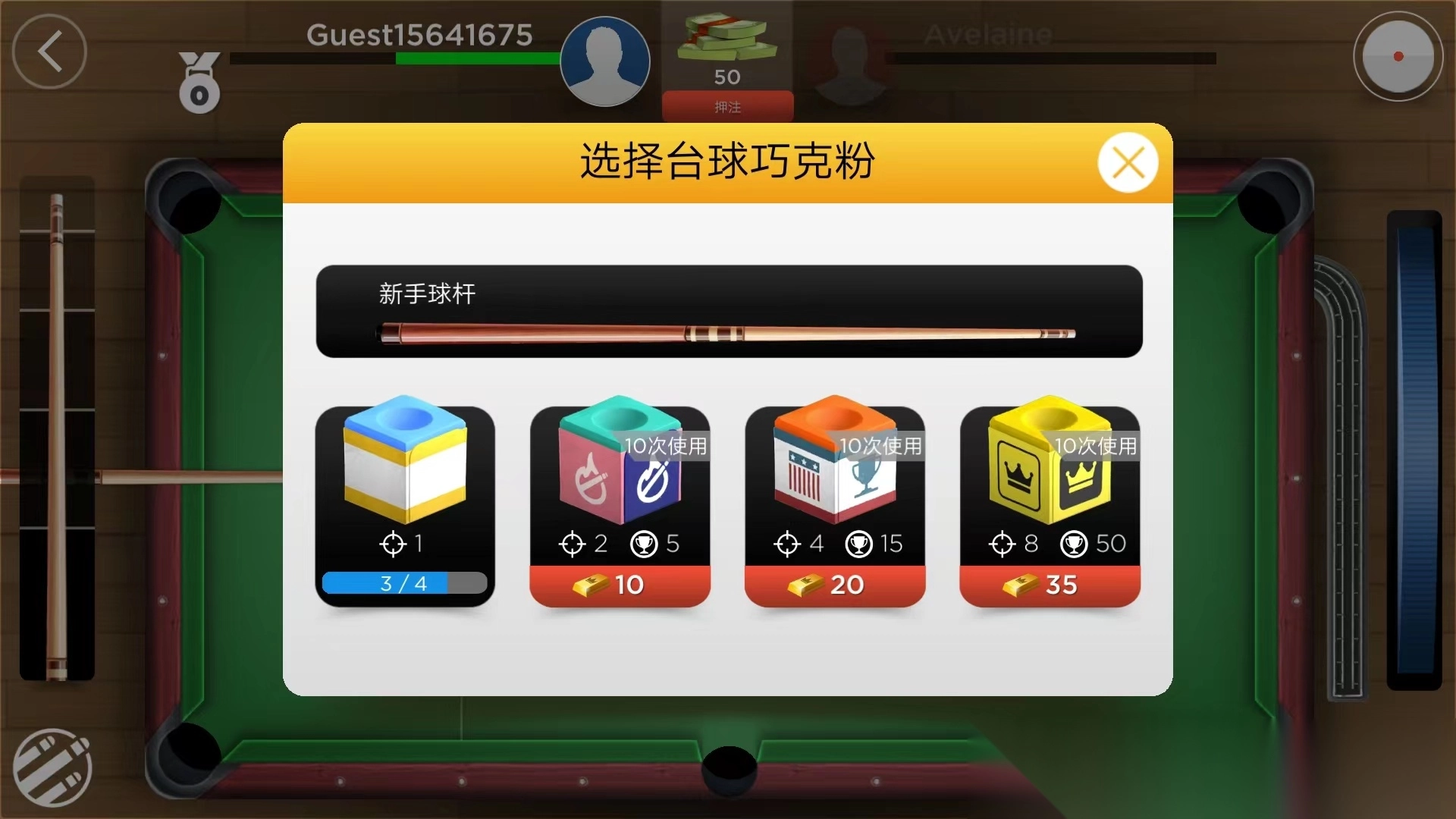 6、在比赛过程中,我们可以随时切换球杆和巧克粉,