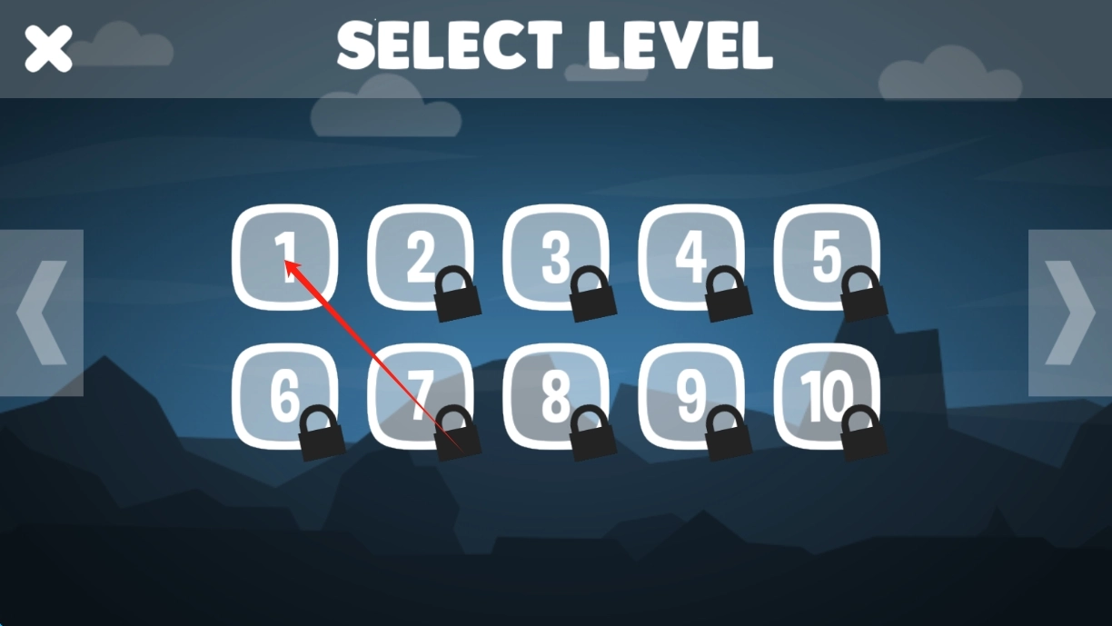 2、进入关卡选择界面,点击1,进入第一关,迎接火柴人对决挑战,点击选择关卡。