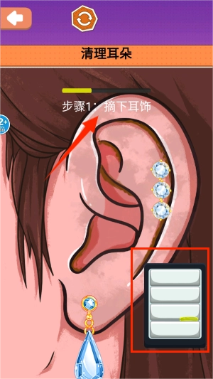 3、按照提示步骤依次操作,比如先取下耳环饰品,再使用棉签清理。每个步骤完成都会获得即时反馈和鼓励动画。