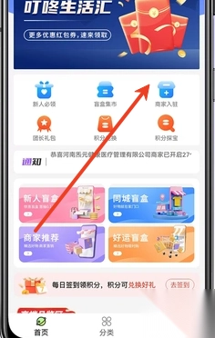 1、用户需要进入首页,在首页上找到“商家入驻”。