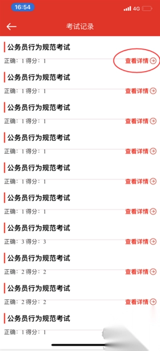通过"考试历史"可以查询过往所有考试成绩记录,点击具体考试可查看详细答题情况与得分。