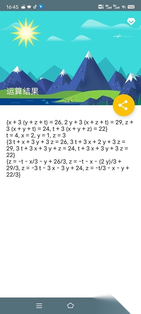 3、若已有现成的方程文本,可直接粘贴至输入框,随后点击左边的计算键,答案即刻呈现。例如以下这个方程组,粘贴后一键就能得出解。