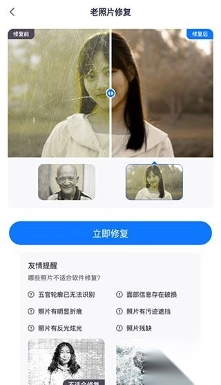 2、依据你照片的受损程度,挑选对应的功能,点击“老照片修复”