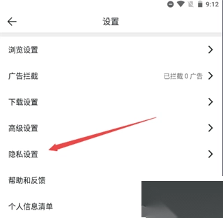 3、在设置界面中,找到并进入"隐私设置"子菜单