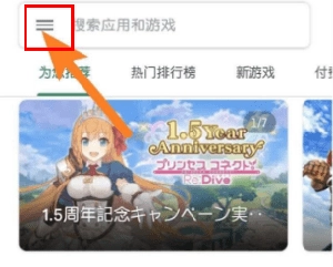 1、打开谷歌商店后,点击左上角的“三条横杠”,如图所示;