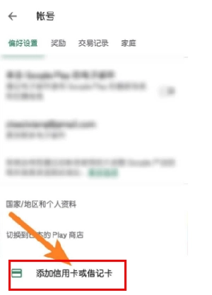 4、往下拉点击“添加信用卡或借记卡”,填写对应地区的信用卡;