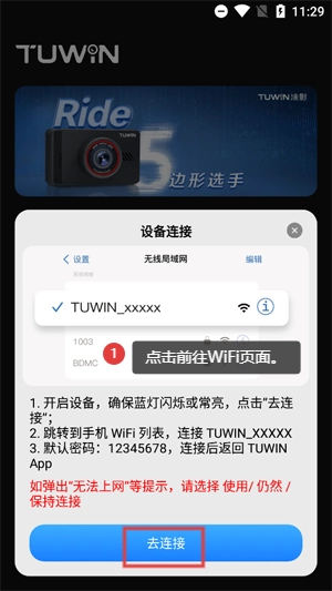 在弹窗当中查看连接说明,点击去连接。