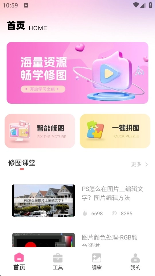 2、在首页,大家能够看到平台精心准备了海量的修图知识与课程。