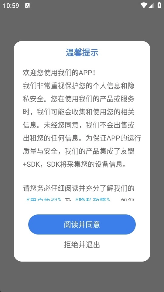 1、打开app,点击“阅读并同意”;