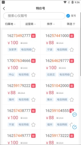 用户可以一键搜索心仪靓号,通过搜索靓号的方式找到你的号码购买使用。