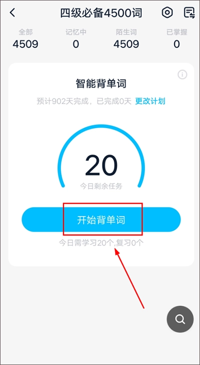 4、设定完成后,点击【开始背单词】即可开启自己的每日学习计划