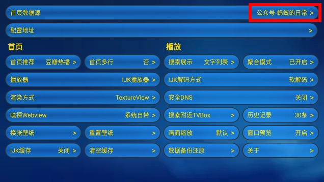 2、进入设置界面,第一个设置就是首页数据源,打开进入更换数据源。
