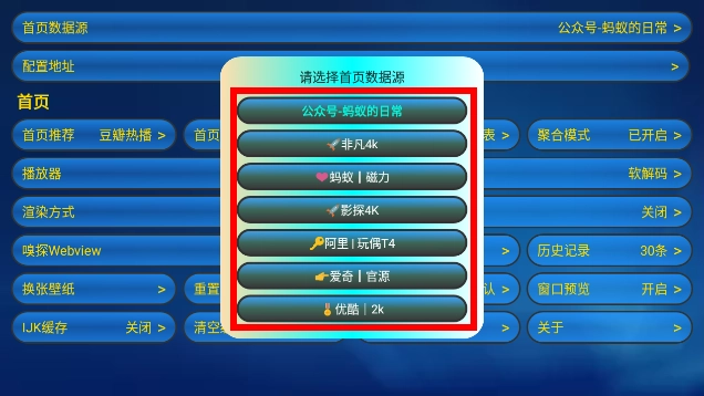 3、数据源较为丰富,大家不妨逐步尝试。要是碰到某些电视无法观看的情况,也能在此处更换数据源。