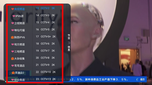 3、在左侧设有换台菜单,此菜单不仅能助力大家快速换台,还能让大家知晓频道内的节目信息。