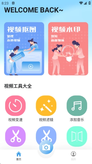 1. 在首页,能够执行视频抠图、视频水印去除、视频变速、视频裁剪、视频滤镜应用、视频倒放、视频镜像处理、视频贴纸添加以及音乐添加等操作。