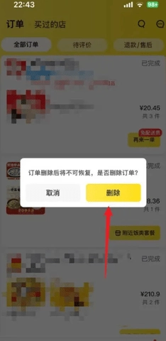 进入订单界面,选择要删除的订单,向左侧进行拖动,点击【删除】。