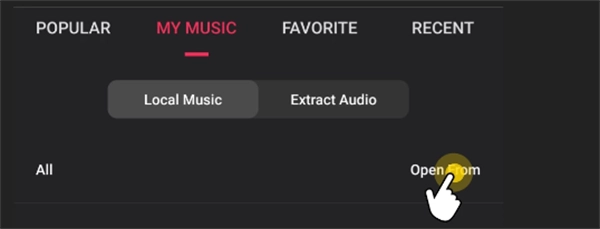 2. 点击“我的音乐”,可通过选择音乐文件,或者从视频中提取音频的方式,添加自定义音乐。