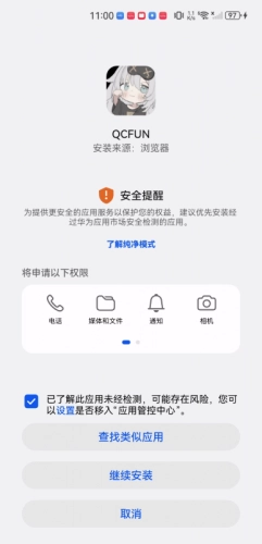3、接下来第三步,找到并点击勾选“已了解此应用未经检测……”这一选项,随后点击“继续安装”按钮。(若出现安全提醒,无需慌张)