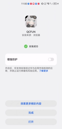 5、当出现绿色对号时,即表明“安装完成”,点击打开就能开始体验。若安装失败,可前往官网点击下载。