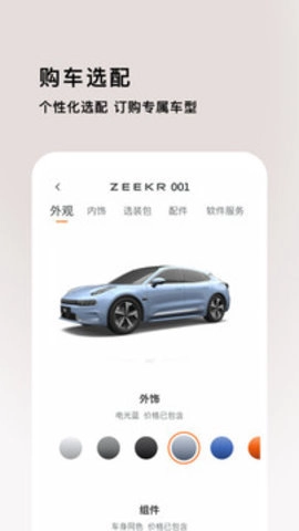 4.爱车商城:在线下单,轻松选配你的专属ZEEKR 001。
