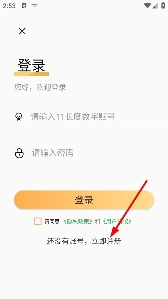 2、在登录页面,如果没有账号,点击“还没有账号,立即注册”,即可进入注册页面。