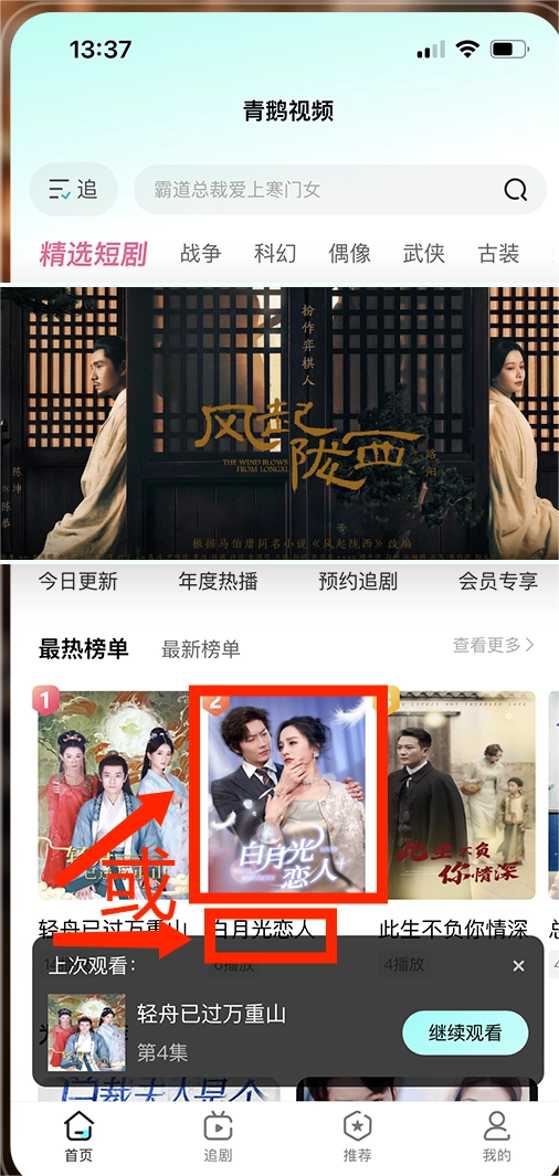 1. 开启青鹅视频,寻觅到任意短剧的封面或者剧名后点击,像《白月光恋人》这类短剧皆可。