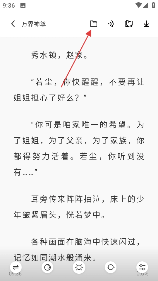 1. 于应用的书架界面,点击《万界神尊》,即可进入该书的阅读页面。