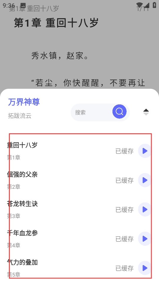 4、于章节列表里,能够查看《万界神尊》已缓存的章节,挑选相应章节便可阅读。