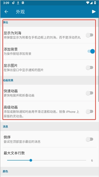 4、点击“外观”,各位能够依据自身喜好对灵动岛的动画效果等进行设置。