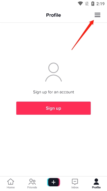 1、第一步,你要在本站网下载安装并打开TikTok,进入主页后,点击右下角的“profile”,接着点击右上角。