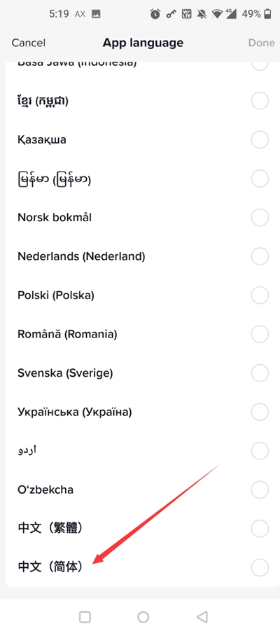 5、在喜爱的列表里挑选想要更换的语言就行。