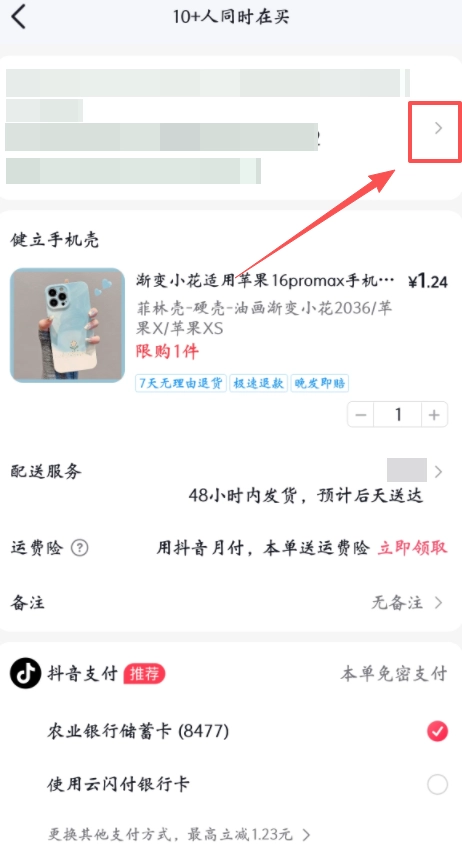 1. 开启软件,在订单提交确认页面,点击此前自己的收货地址。