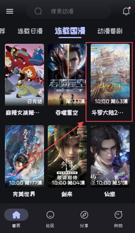 3、随意挑选一部你感兴趣的动漫点开,在此小编以正在连载的国漫《斗罗大陆2》为例。