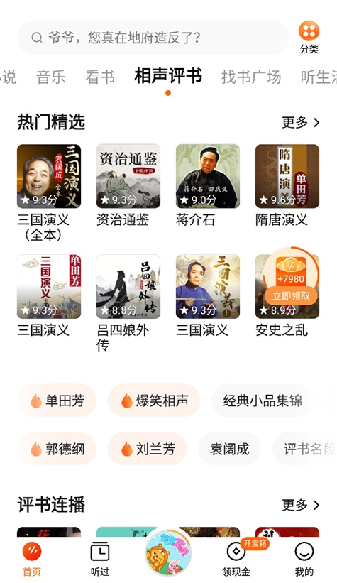 3、用户也能够进入相声评书页面,从中挑选想听的相声。