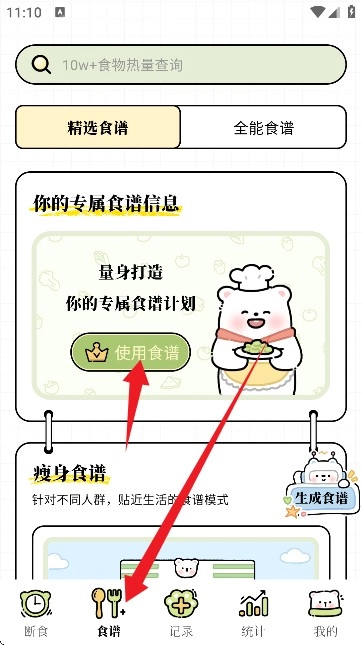 依据你的性别、体重、身高以及运动状况,智能定制专属个人的减脂方案,助你吃得科学、瘦得迅速。