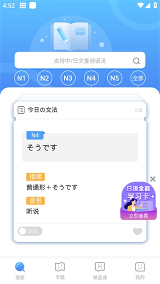 3、语法查询功能:支持中日文检索,能随时查找所需语法,高效快捷。