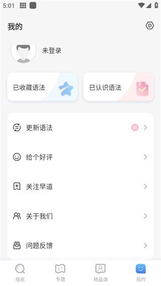 在“我的”页面查看已收藏的语法点以及已掌握的语法,方便随时进行复习。