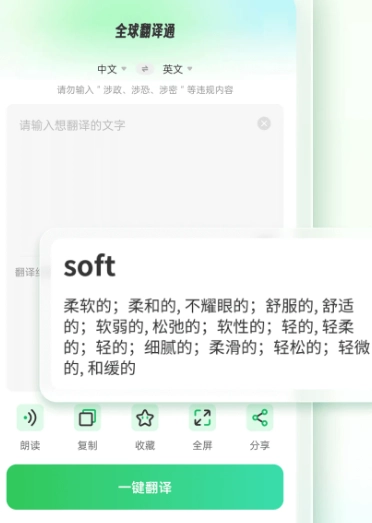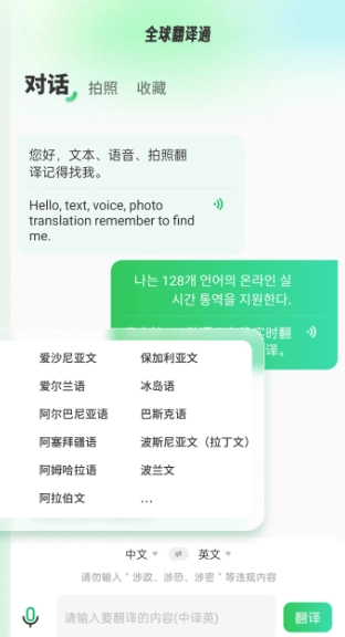 全球翻译通作为一款多功能语言翻译工具,将语音识别与智能翻译技术相融合,始终专注于为用户打造快速且准确的跨语种沟通体验。它能够支持多达数十种语言的实时相互翻译,无论是日常交流场景,还是旅游出行途中,亦或是商务洽谈时刻,都能够灵活应对各种情况。全球翻译通还提供了文字输入、语音识别以及拍照翻译等诸多便捷的翻译方式,方便用户依据不同场景自由选择使用。