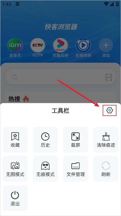 1. 开启快客浏览器,于主页点击右上角的三横线图标。