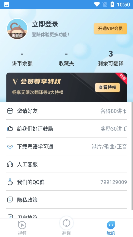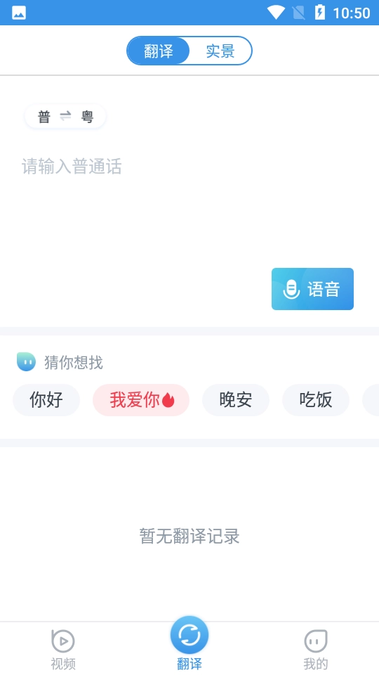 3、【翻译】界面不仅具备基本的普通话与粤语相互翻译的功能,同时还支持语音翻译。
