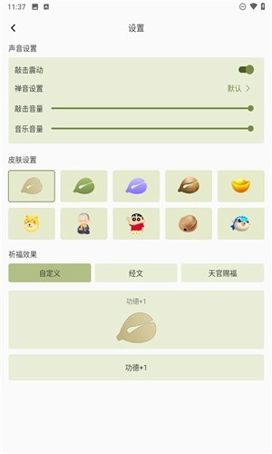 2、用户可自定义木鱼皮肤、敲击频率、特效及音效,满足不同用户的需求,带来更舒适的使用感受。