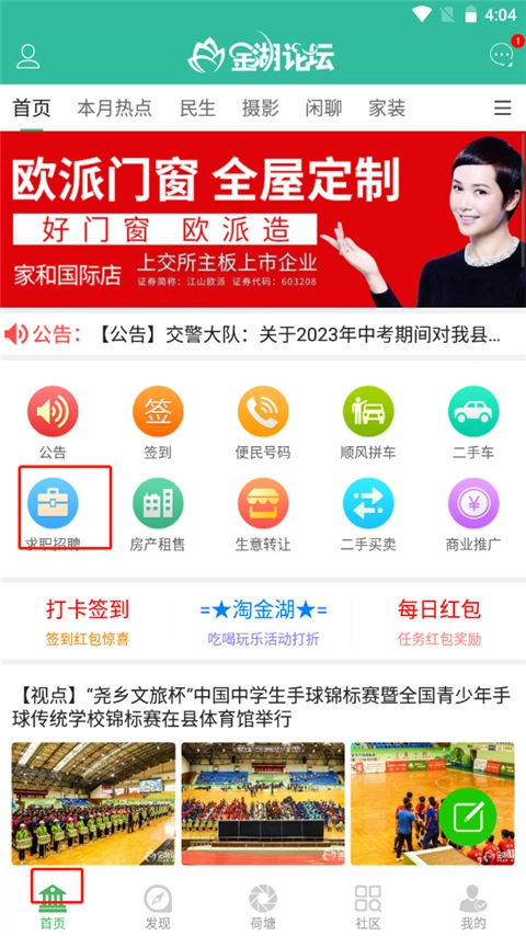 1. 打开软件,进入首页后,点击“求职招聘”选项。