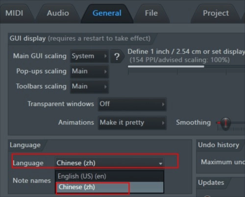 1. 开启fl studio后,察觉到软件默认呈现为英文版。