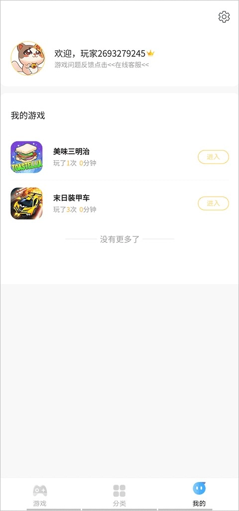 3、在我的界面上,会呈现出你近期正在游玩的游戏,以及对应的游戏时长。点击进入,就能继续尽情畅玩。