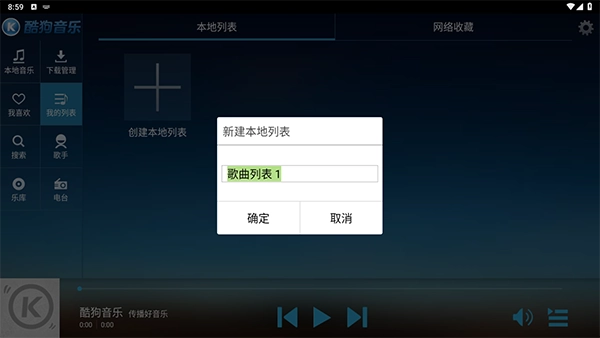 3、请为自己的列表命名,若未命名,系统将自动默认命名为歌曲列表1 。