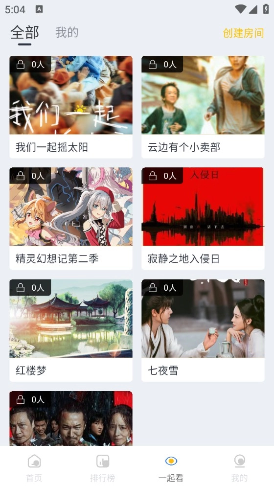 5、“一起看”板块可以创建房间邀请好友一起观看哦。