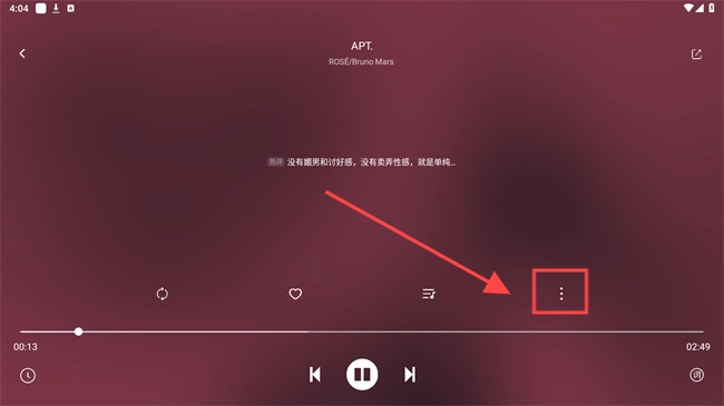 3、最后在音乐播放界面点击三点图标,选择功能即可歌曲