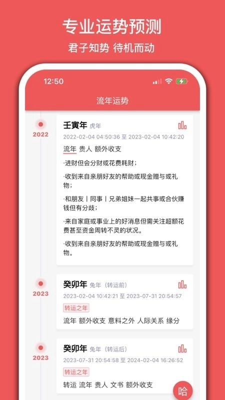 3. 运势:可进行年、月、日维度的个人运势查询。