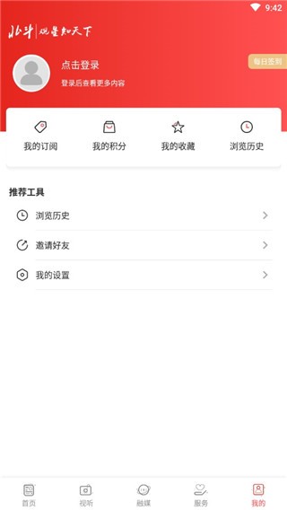 5、点击“我的”一栏,即可登录账号,查看浏览历史,进行设置等操作。